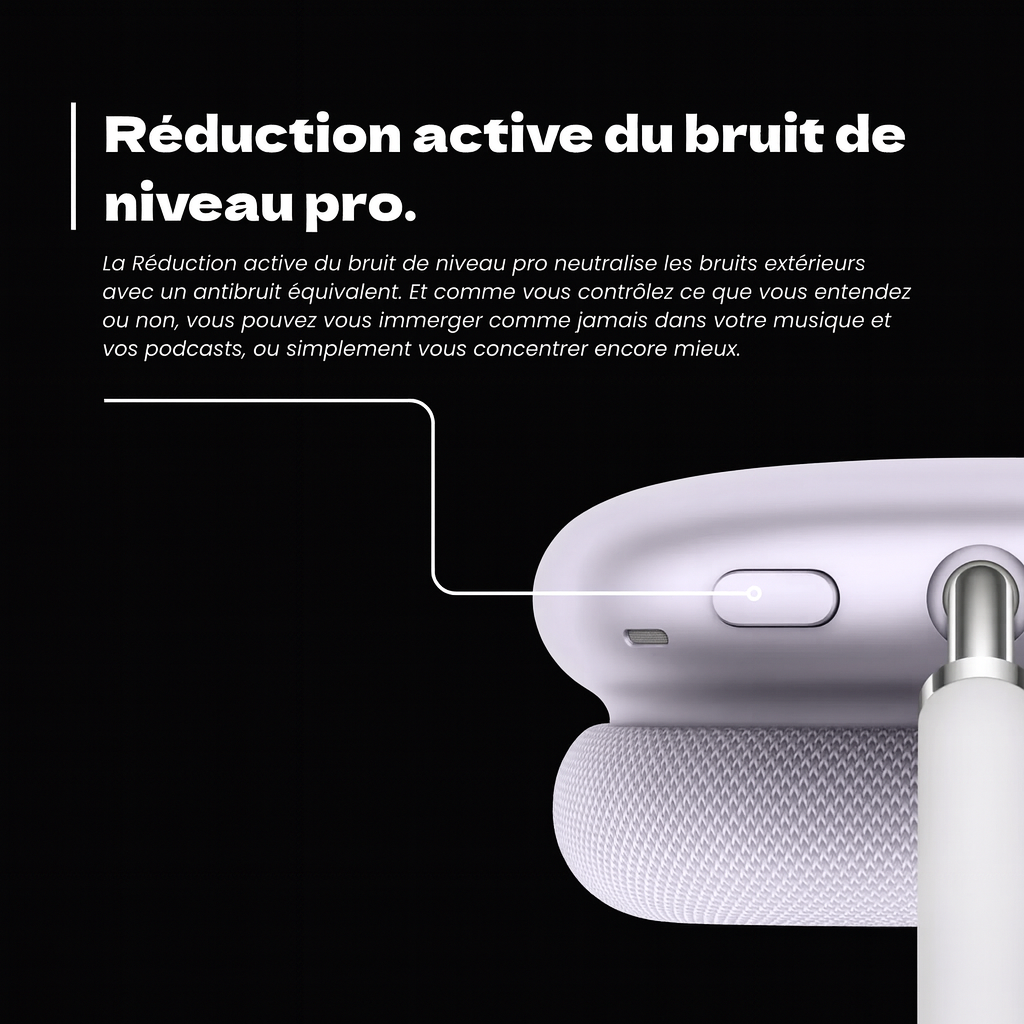 Bloquez le monde et plongez dans l’instant : Le AIRPODS MAX intègre le Mode de Réduction de Bruit Active Pro, assurant une isolation sonore totale et reconnue comme la meilleure du marché pour vous garantir une concentration ou une immersion maximale, n’importe où.